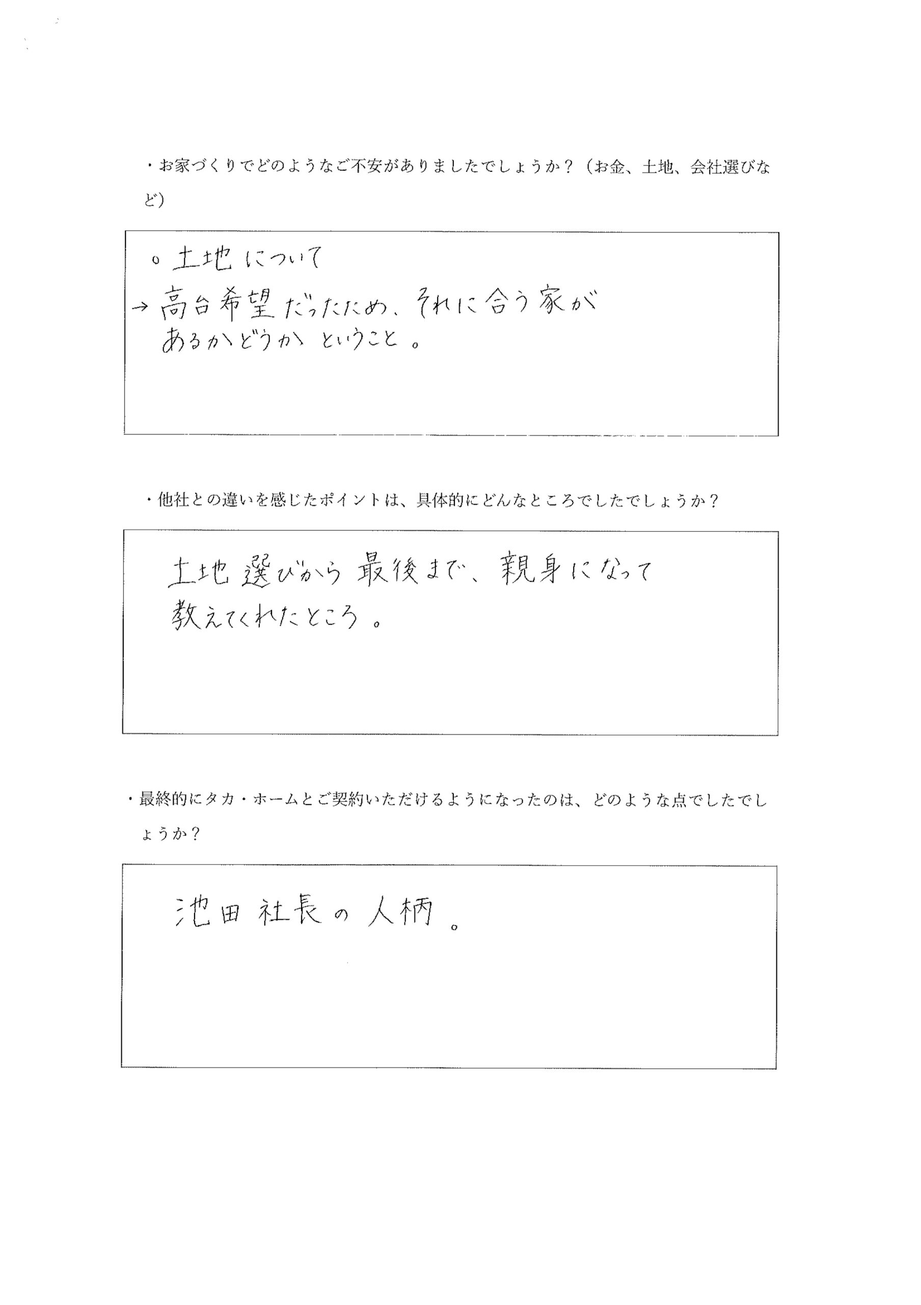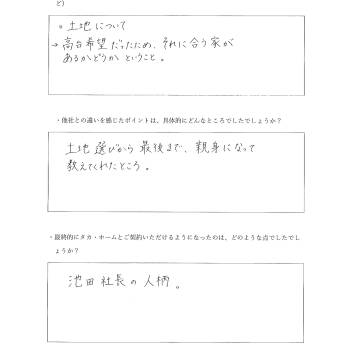最終的にタカ・ホームとご契約いただけるようになったのは、どのような点でしたでしょうか。