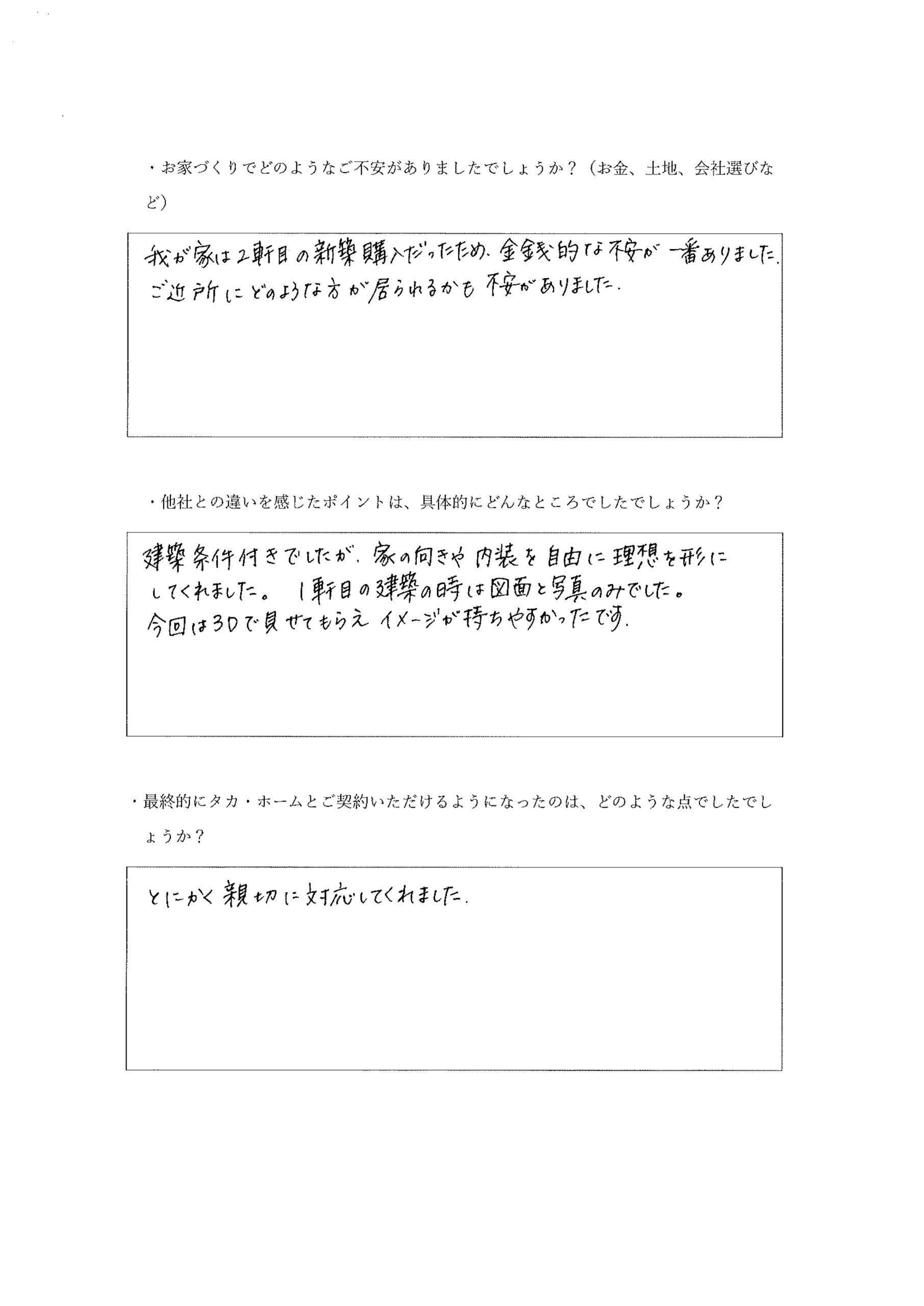 最終的にタカ・ホームとご契約いただけるようになったのは、どのような点でしたでしょうか。