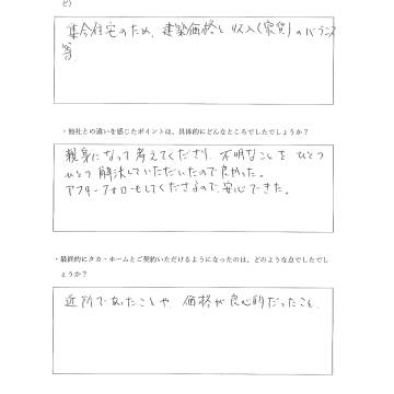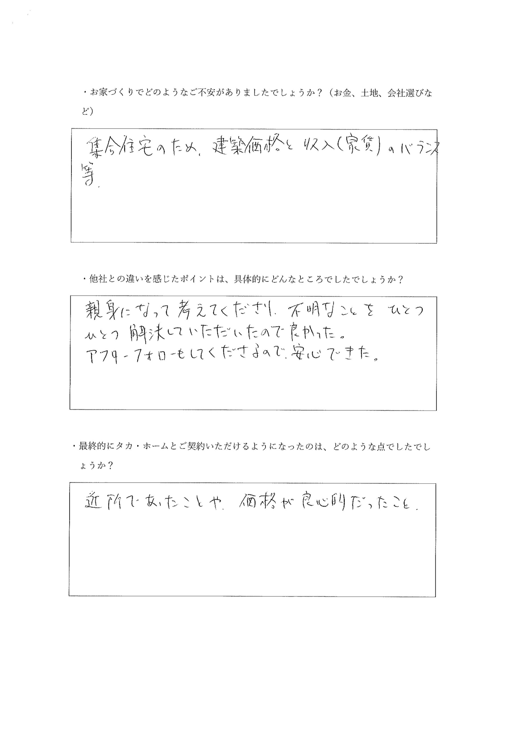 最終的にタカ・ホームとご契約いただけるようになったのは、どのような点でしたでしょうか。